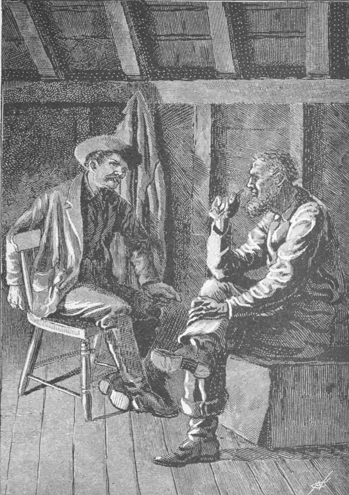 Sandy remained at the cabin, partly because{197} he felt himself an outside factor, and partly to bear company with Buckeye Jim, Morris, and the Deputy Sheriff, who were guarding the prisoner, and chatting over Rocky Mountain adventures in a way very entertaining to the Scotchman.