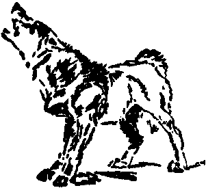 As night came down the little fellow became very uneasy, sneaking out of his box, but going back at each slight alarm, tugging at his chain, or at times biting it in fury while he held it down with his fore-paws. Suddenly he paused as though listening, then raising his little black nose he poured out a short, quavering cry.