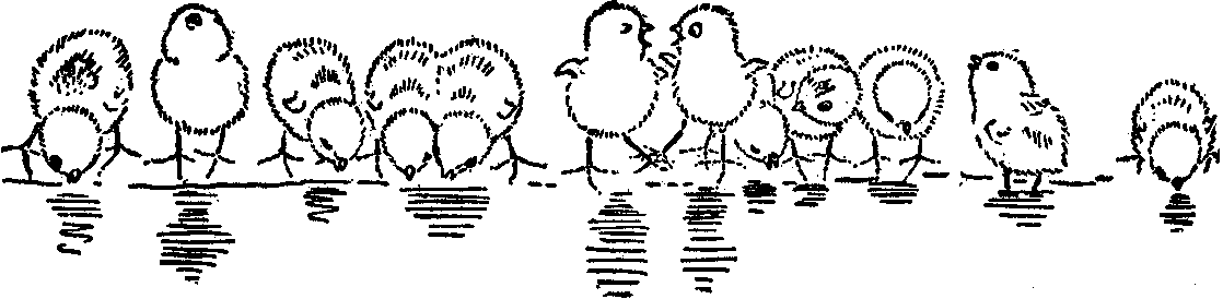 At first the little fellows didn't know how to drink, but they copied their mother, and soon learned to drink like her and give thanks after every sip. There they stood in a row along the edge, twelve little brown and golden balls on twenty-four little pink-toed, in-turned feet, with twelve sweet little golden heads gravely bowing, drinking, and giving thanks like their mother.