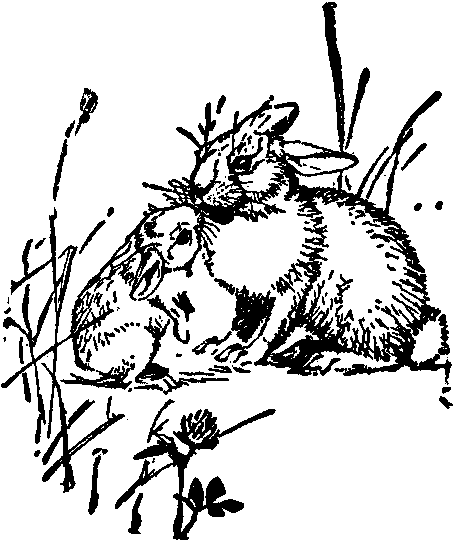 Here a cottontail rabbit leaped out and gave them a great scare. But the flag of truce he carried behind was enough. He was an old friend; and among other things the little ones learned that day that Bunny always sails under a flag of truce, and lives up to it too.