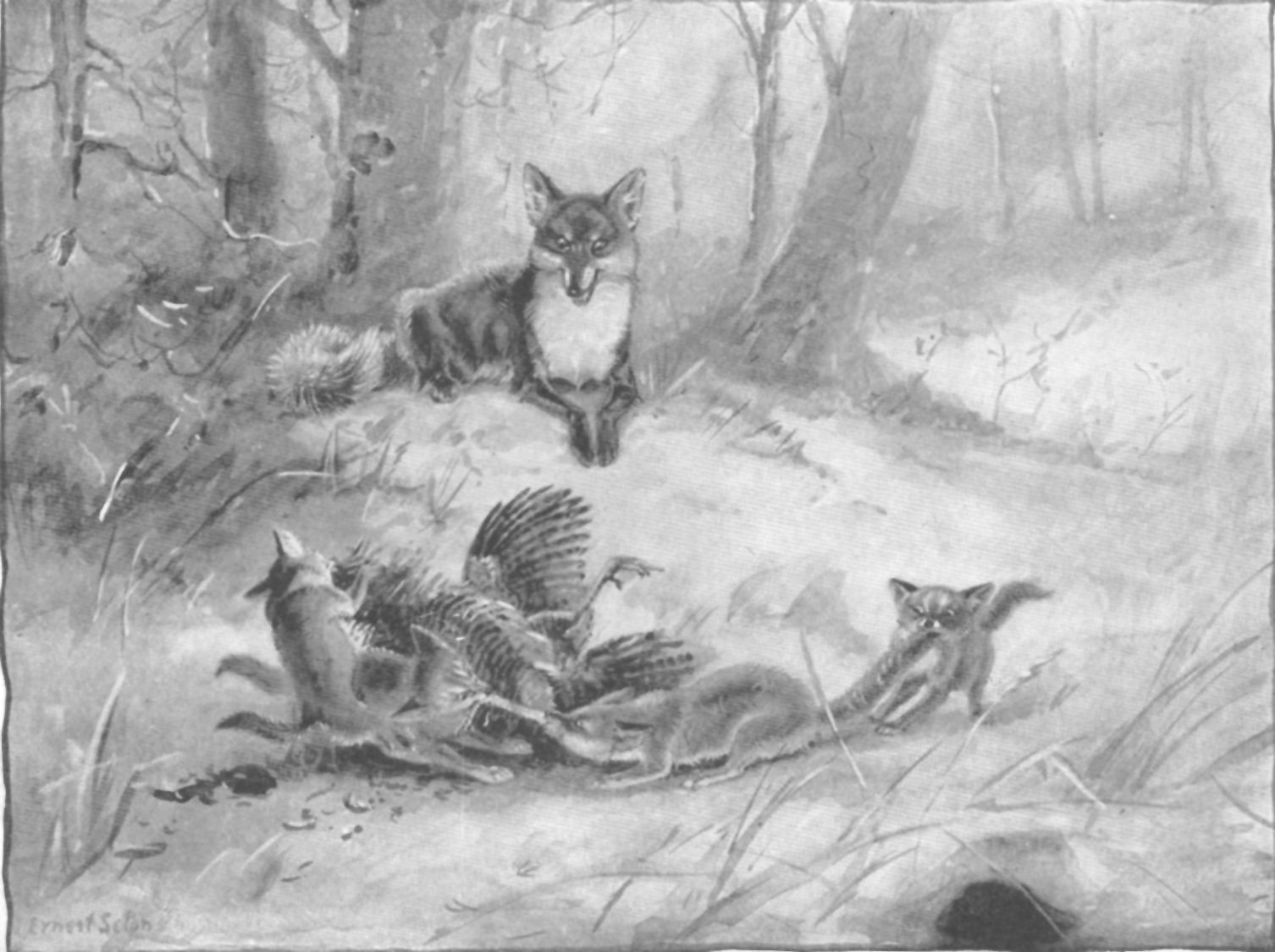 Like a shadow she came and in a moment was gone, and Tip seized on something dropped, and crunched and chewed with relish what she brought. But even as he ate, a knife-like pang shot through and a scream of pain escaped him. Then there was a momentary struggle and the little fox was dead.