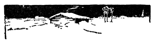 [Pg 58]It was nearly night before the trail warmed up, but even then, in spite of Yan's earnest protest, they drove on in the sleigh. And soon they came to where the trail told of seven keen observers looking backward from a hill, then an even sevenfold chain of twenty-five-foot bounds. The hunters got no glimpse at all, but followed till the night came down, then hastily camped in the snow.
