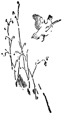 A last long follow brought the hunt back to familiar ground—a marsh-encompassed tract of woods with three ways in. There was the deer's trail entering. Yan felt he would not come out there, for he knew his foe was following. So swiftly and silently the hunter made for the second road on the down-wind side, and having hung his coat and sash there on a swaying sapling, he hastened to[Pg 85] the third way out, and hid. After a while, seeing nothing, Yan gave the low call that the jaybird gives when there's danger abroad in the woods.