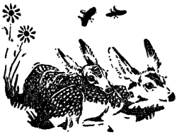In the morning he was back to take it up, but instead of an old[Pg 19] track, there were now so many fresh ones, crossing and winding, that he could not follow at all. So he prowled along haphazard, until he found two tracks so new that he could easily trail them as before, and he eagerly gave chase. As he sneaked along watching the tracks at his feet instead of the woods ahead, he was startled by two big-eared, grayish animals springing from a little glade into which he had stumbled. They trotted to a bank fifty yards away and then turned to gaze at him.