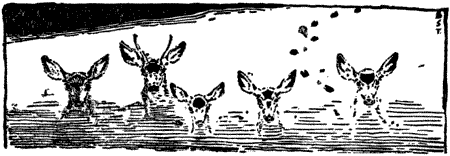 The ball splashed short. The buck sprang up and the doe appeared. Another shot; then, as they fled, another and another. But away the deer went, lightly drifting across the low round hills.