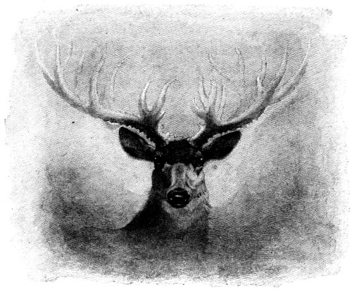[Pg 65]As the men came near the doe made a convulsive effort to rise, but could not. Duff drew his knife. It never before occurred to Yan why he and each of them carried a long knife. The poor doe turned on her foes her great lustrous eyes; they were brimming with tears, but she made no moan. Yan turned his back on the scene and covered his face with his hands, but Duff went forward with the knife and did some dreadful, unspeakable thing, Yan scarcely knew what, and when Duff called him he slowly turned, and the big Stag's mate was lying quiet in the snow, and the only living thing that they saw as they quit the scene was the great round form bearing[Pg 66] aloft the oak-tree on its brow as it haunted the nearer hills.