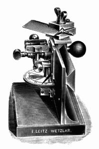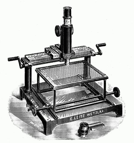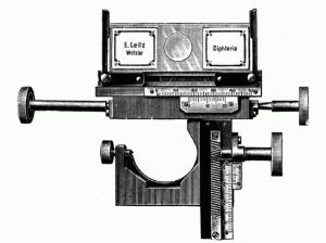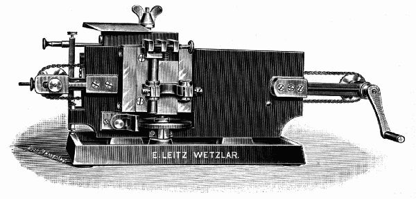 1. A completely new stand "A" with extra fine micrometerscrew transmitting its movement directly to the tube. The stand is of elegant appearance and large dimensions, making it especially well adapted for work in photo-micrography.
