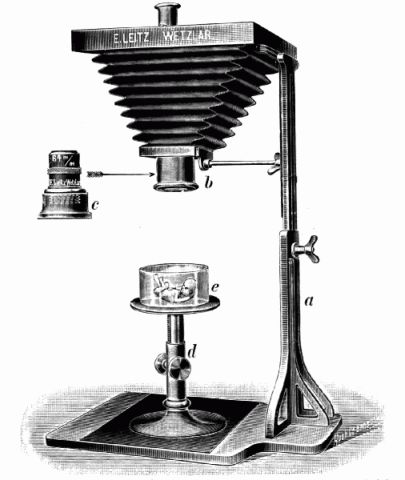 It is designed principally for drawing extended sections and large specimens, and consists of two adjustable doublets. By varying their distance, a changeable magnification down to two diameters may be obtained.