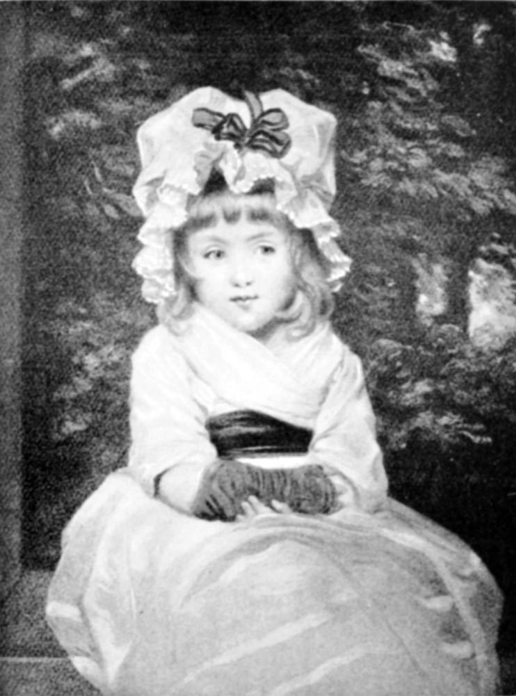 [Pg 17] Miss Penelope’s face is one of the most familiar of Sir Joshua’s art children, and the first favorite with many for the arch loveliness of her expression. Although her mouth is set in a prim little pucker, we cannot repress the suspicion that behind it lurks a good deal of childish fun. The big mob cap and the voluminous mitts add not a little to the quaint charm of the picture, and make it easily recognized by many who are otherwise unfamiliar with Reynolds’s works.