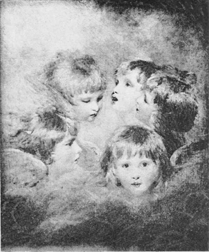 Our list of Reynolds’s pictures would be defective without some mention of the famous Angel Heads, which is peculiarly a representative work. It consists of a cluster of little cherubs, representing, in five different expressions, the delicate features of a single face, whose original was Miss Frances Isabella Gordon. Painted in 1786, near the close of his great career, it seems to gather up into a harmonious [Pg 22] whole those several aspects of childhood which Sir Joshua’s long and wide experience had revealed to him as the typical movements of the child mind.