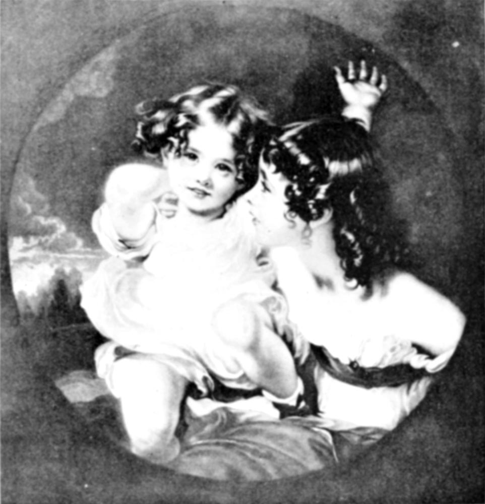 The finest of Sir Thomas Lawrence’s child pictures is undoubtedly the portrait of the Calmady children, better known by the title of “Nature.” This is indeed a picture disclosing the essential truth of the child nature; the two little ones are frolicking together in a perfect abandon of innocent merriment.