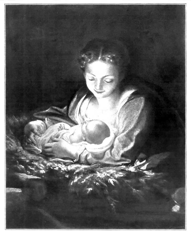 1. The Holy Night.(La Notte.) (Detail.) Painted at the order of Alberto Pratoneri for the altar of his chapel in the church of S. Prospero, Reggio. Agreement signed October 10, 1522. Stolen from the church May, 1640, and taken to Modena. Now in the Dresden Gallery. Size of whole picture: 8 ft. 5 in. by 6 ft. 2 in.