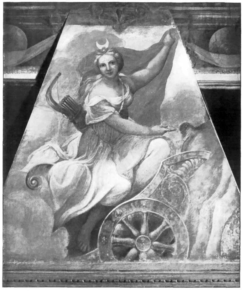 4 and 5. Ceiling Decoration, and Diana, in the Sala del Pergolata, Convent of S. Paolo, Parma. Frescoes painted in 1518.