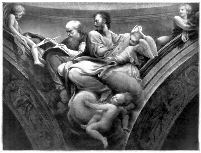 11 and 12. Apostles and Genii, and St. John the Baptist. Frescoes in the Cathedral of Parma. Painted 1524-1530.