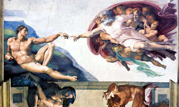 Even with seated figures he followed the same principle. Moses and the Duke Giuliano are ready to rise to their feet if need be. In his frescoes we again find the same motif,—Adam rising to his feet in obedience to the Creator's summons, and Christ the Judge sweeping asunder the multitudes.