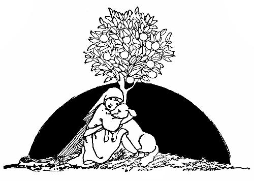 The garden was indeed a pleasant place, and Naomi's happiest hours were spent here, whether playing peacefully alone, or amusing baby Jonas, or when the family gathered together under the orange-tree, Father and Mother, brother Ezra, baby Jonas, and herself.
