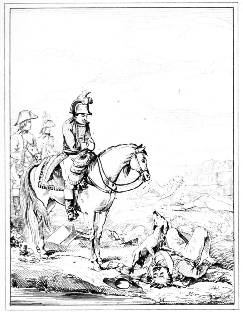 In Italy, after the battle of Bassano, Napoleon, followed by his staff rode over the field. The moon shed her light upon that scene of horror, and the profound silence of the night was disturbed only by the sad cries of the wounded, and the dismal groans of the dying. All at once a dog that had been lying on a dead body, came forward whining, running back and forth, seemingly divided between the desire of avenging the death of his master, and the fear of allowing the body to become cold. Napoleon stopped; his soul was stirred by the faithful friendship of the animal compared to the neglect with which the other victims were treated, and he remained absorbed in profound meditation.