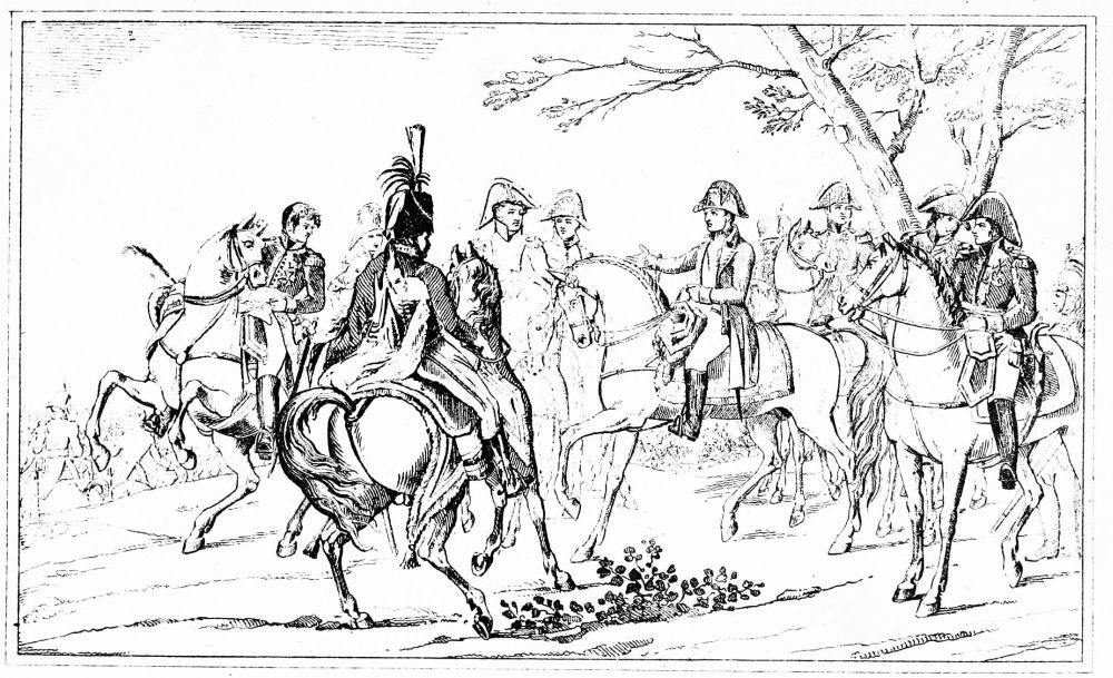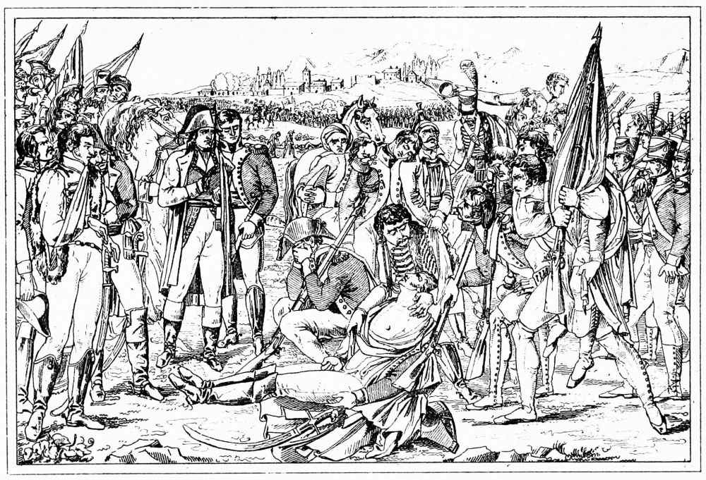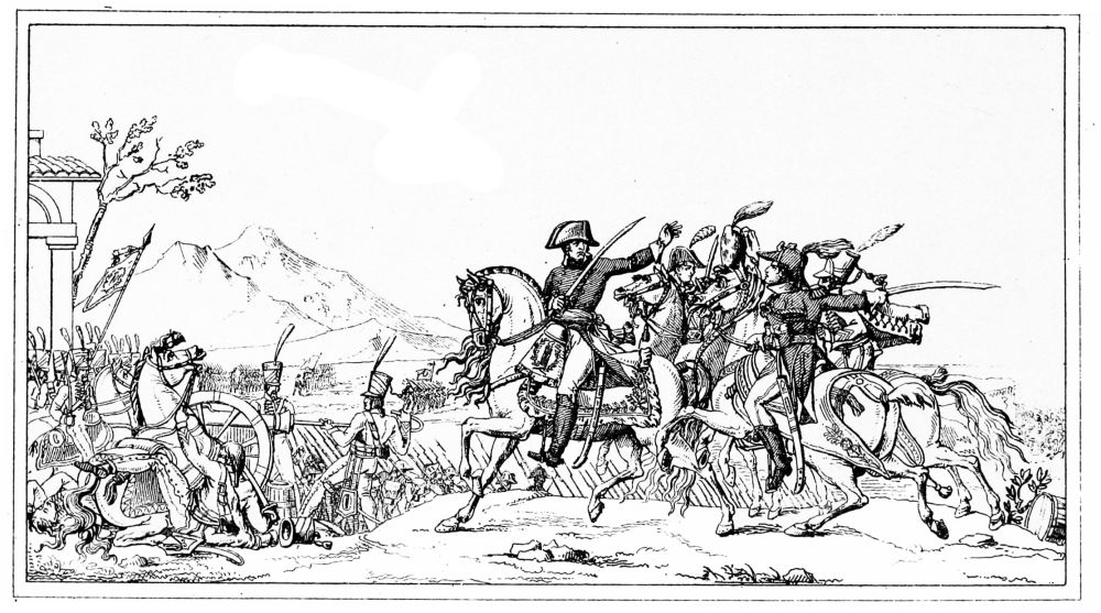 At three o’clock in the afternoon, Napoleon took up his position on the road to San Juliano. “Soldiers!” he cried, “we have retreated far enough, now let us advance! You know it is my custom to sleep on the battle field!” Desaix was ordered to throw himself with his fresh troops upon the 6000 grenadiers of Colonel Zach. Desaix prepared to carry out these orders, but was shot dead at the first fire. “Alas! I must not weep,” said Napoleon; but the loss of this esteemed general redoubled the fury of the troops. Zach himself was taken prisoner; and the next day Melas entered into a negotiation, offering to abandon Genoa, and all the strong places in Piedmont, Lombardy, and the Legations,—provided Napoleon would allow him to march the shattered remains of his army unmolested to the rear of Mantua; this offer Napoleon accepted, and thus became the conqueror of Italy.{101}{100}