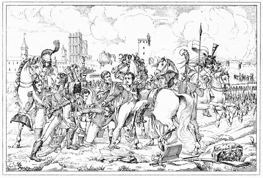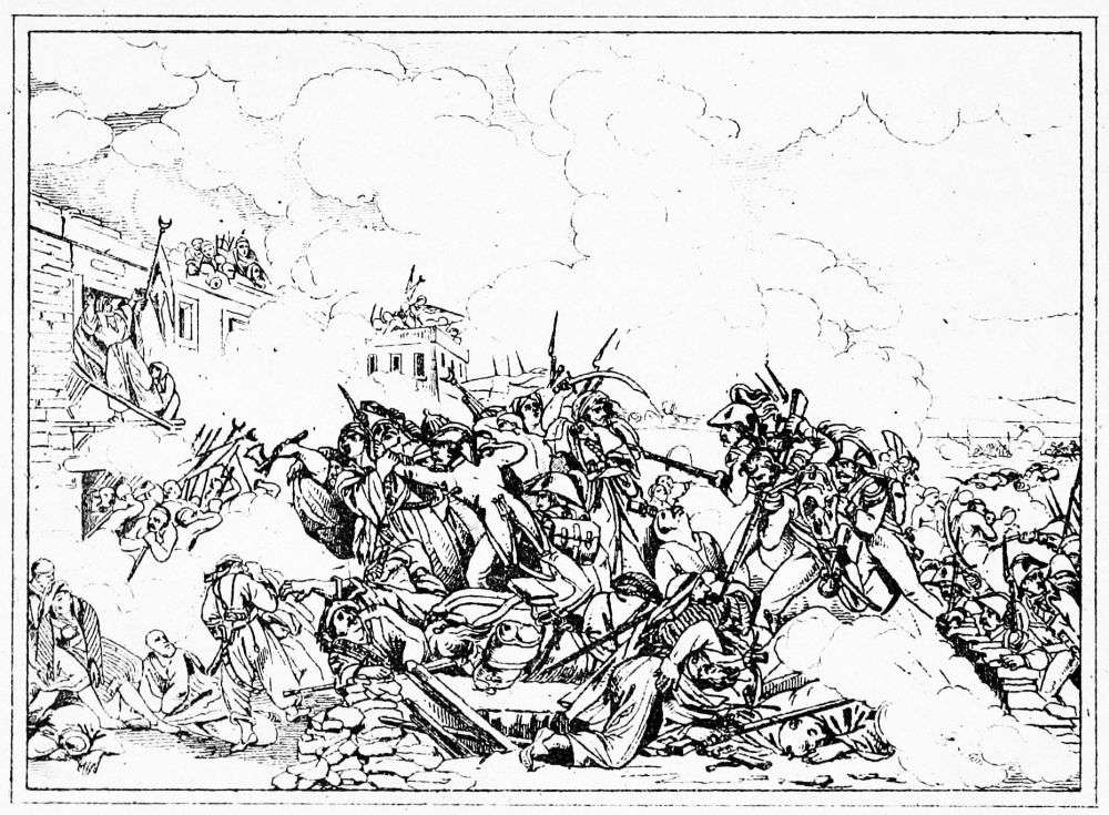 Reduced to despair, they attempted a sortie, but were met by the French grenadiers. At length they threw down their arms and surrendered at discretion; imploring mercy, and uttering their cry of distress, Amman!{65}{64}