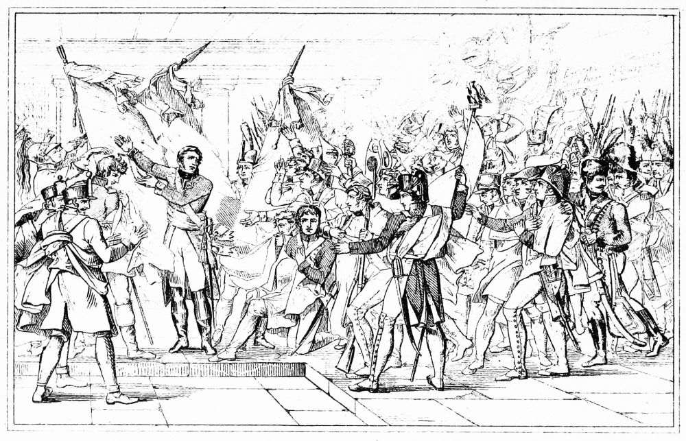 As soon as it was reported throughout the capital that Napoleon was at the Tuileries, and that the chief power was now vested in him. The people ran thither in crowds. A proclamation was addressed to the people, and another to the soldiers.{93}{92}