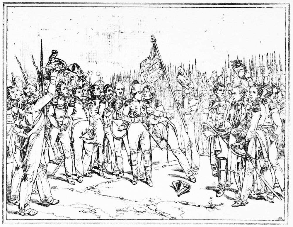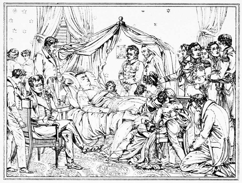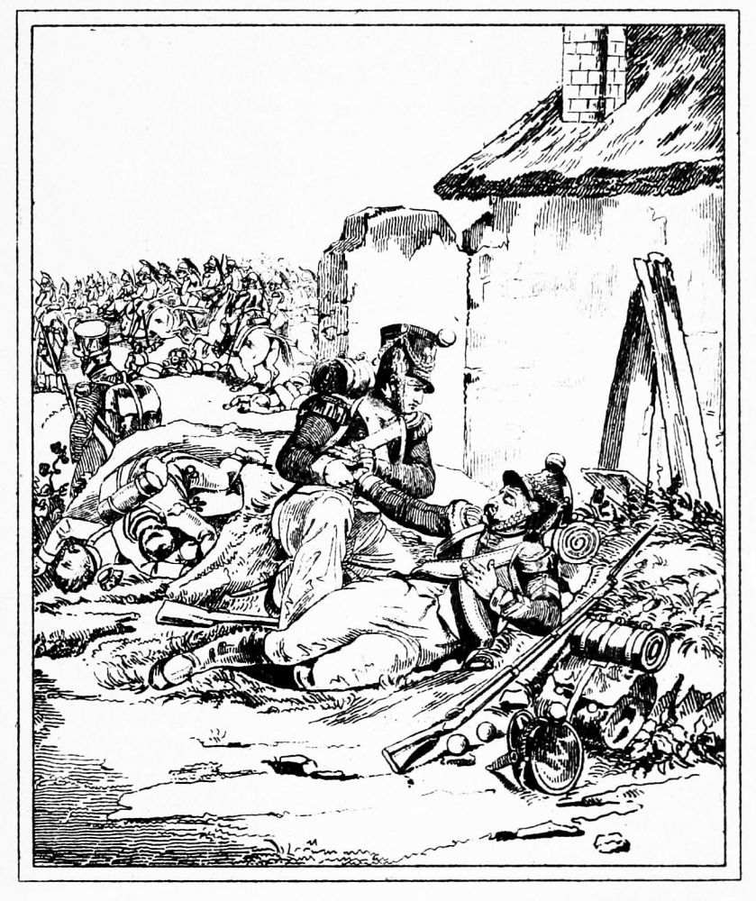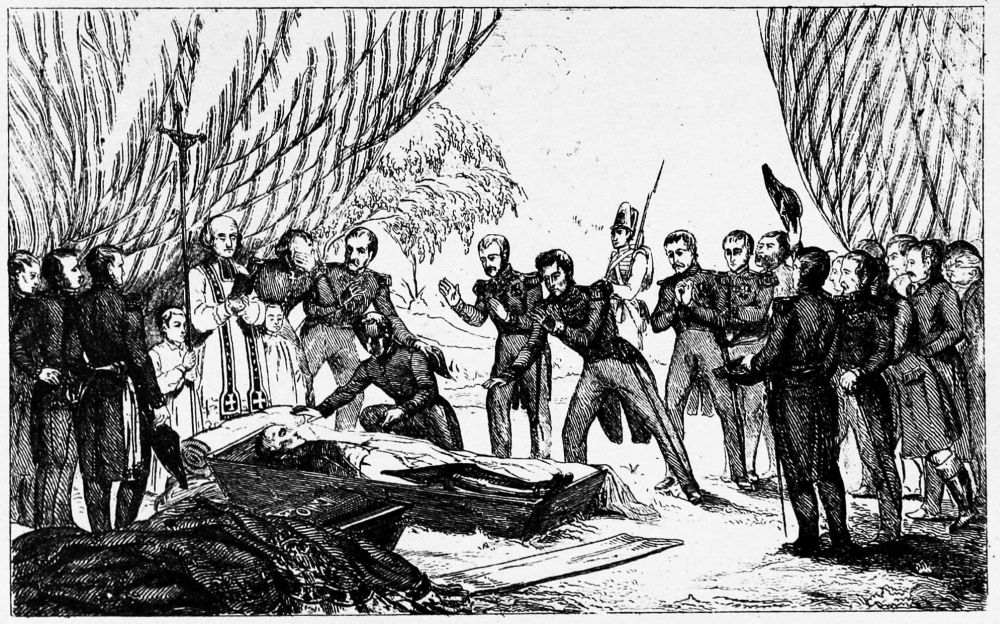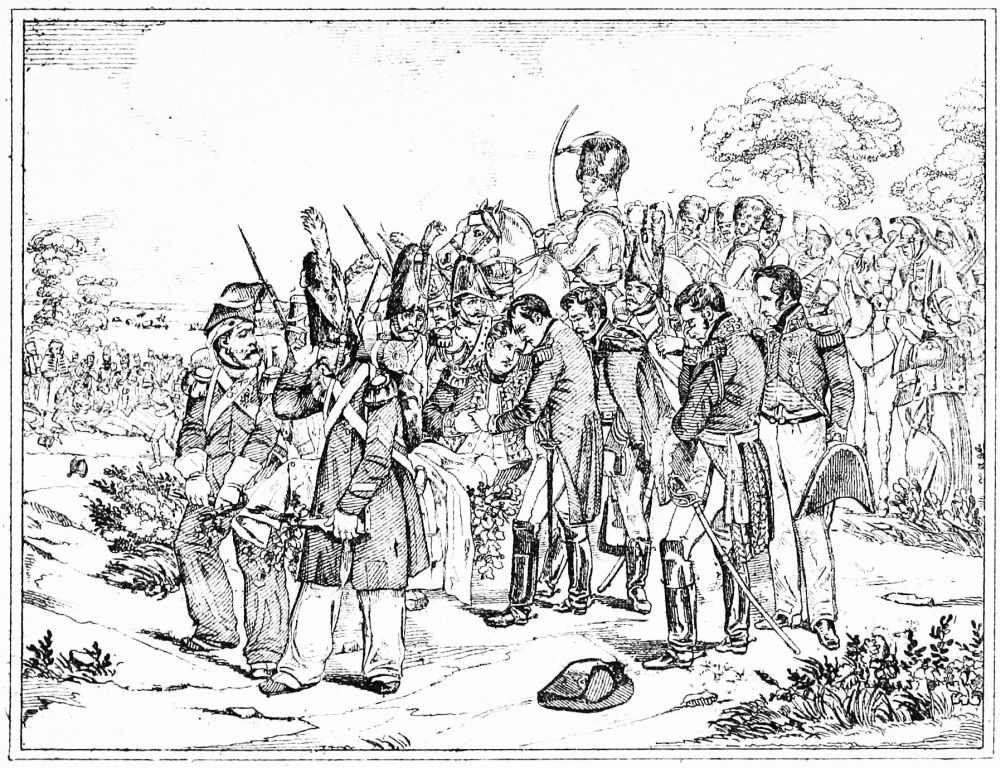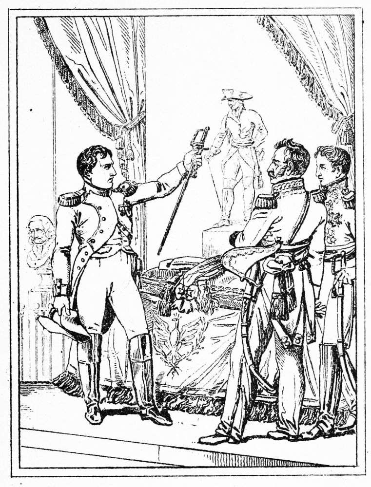 The original picture from which this engraving is copied, ornaments the library at the Hotel des Invalides. It was painted at the express command of Napoleon.