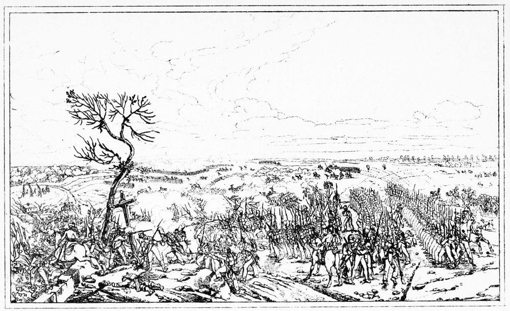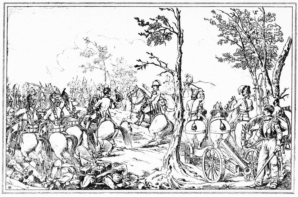 Early in the morning on the 14th of June, the Austrians commenced a furious attack on the village of Marengo. The First Consul found it necessary to call in Desaix, who was now half a day’s journey distant from headquarters, where he had been sent to watch the road to Genoa. Napoleon arrived on the field at ten o’clock, when the enemy was in possession of Marengo, and the division under Victor was completely routed. He sent his guard to Victor’s aid, and assisted himself in the support of Lannes, directing the division of Carra-Saint-Cyr upon the extreme right, in order to take in flank the whole left wing of the enemy.