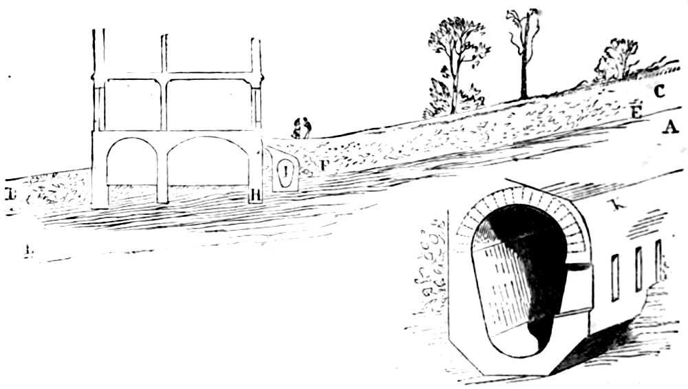 Embankment (cavalier), heap of excavated earth, regularly placed and raised above the surface of the ground.