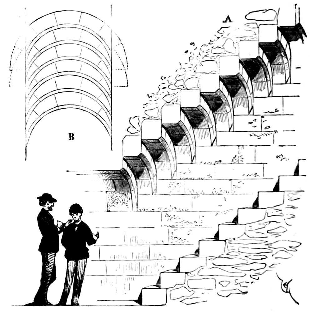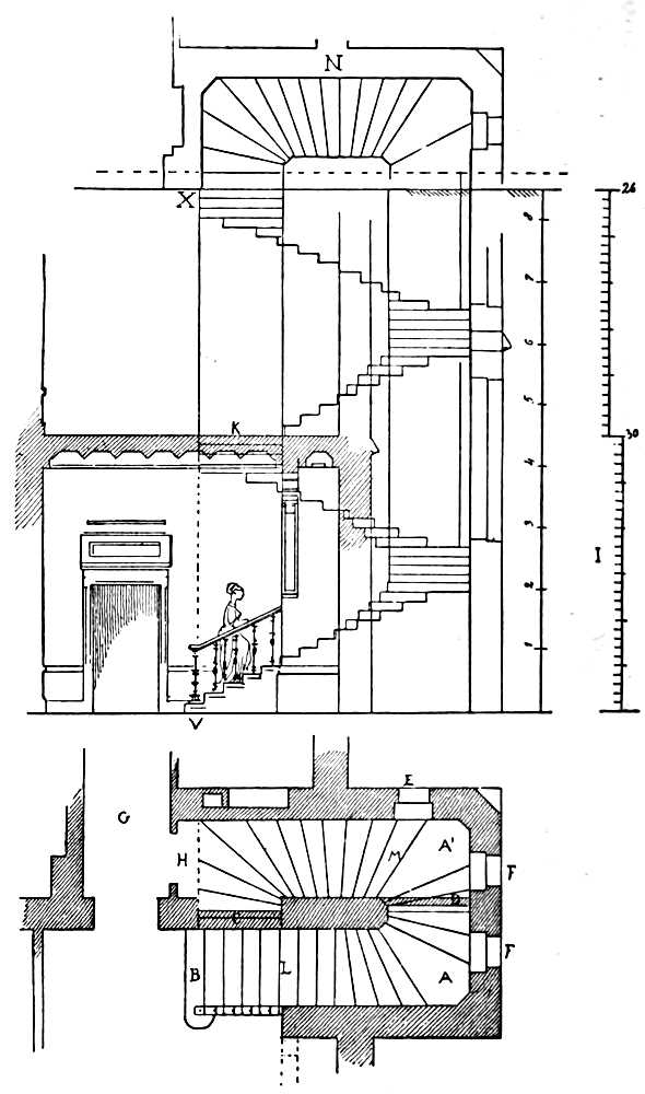 Staircase (cage d’escalier), is the casing of masonry or timber-work in which are enclosed the steps of the stairs.