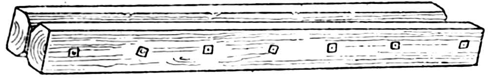 Put-log (boulin), piece of wood which, resting in the wall at one end, and upon the scaffold runners at the other, serves to carry the platform upon which the men work in raising a building.