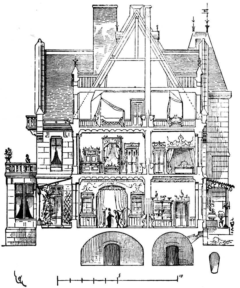 As the scene of this architectural novelette is laid in France, there is much both in the general remarks and in the arrangements of the building described which only applies to the social conditions and requirements of the French. But the value of the principles laid down and[Pg viii] the practical instruction conveyed is not thereby materially lessened, since every page of the book exhibits important truths or excellent methods, which are of general application. By following out those principles it would be easy to obtain the same admirable adaptation of arrangement, soundness of construction, and charm of design for an English house, which the author has so ably laid down and fully illustrated in reference to its French counterpart.