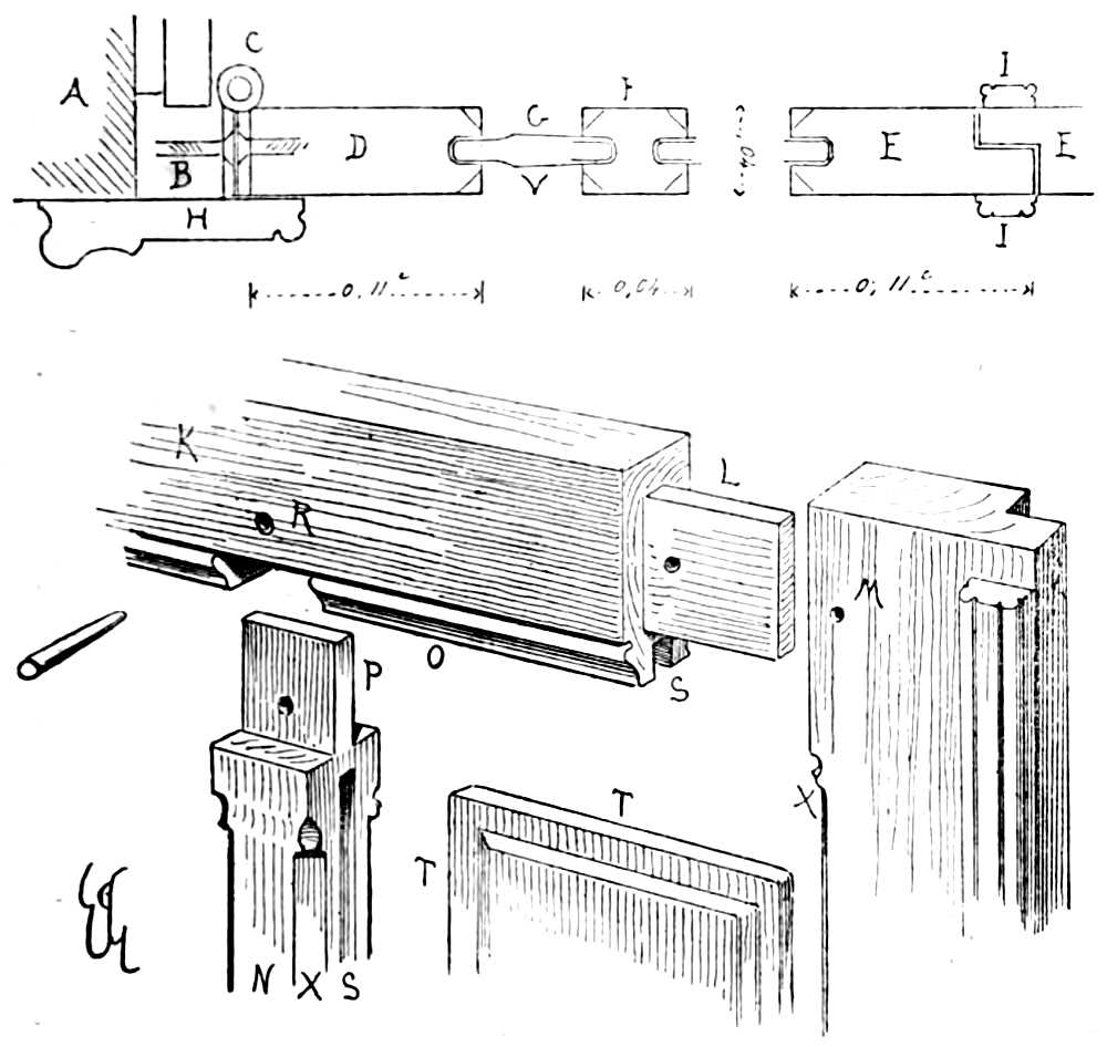 Notching (embrèvement), sinking made in a piece of wood to receive a mortise and tenon framing.