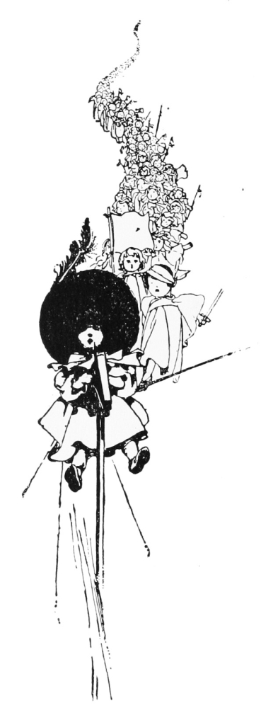 There is a sort of a garden—or rather an estate, of park and fallow and waste—nay, perhaps we may call it a kingdom, albeit a noman’s-land and an everyman’s land—which lies so close to the frontier of our work-a-day world that a step will take us therein. Indeed,{8} some will have it that we are there all the time, that it is the real fourth dimension, and that at any moment—if we did but know the trick—we might find ourselves trotting along its pleasant alleys, without once quitting our arm-chair. Nonsense-Land is one of the names painted up on the board at the frontier-station; and there the custom-house officers are very strict. You may take as much tobacco as you please, any quantity of spirits, and fripperies of every sort, new and old; but all common-sense, all logic, all serious argument, must strictly be declared, and is promptly confiscated. Once safely across the border, it is with no surprise at all that you greet the Lead Soldier strutting somewhat stiffly to meet you, the Dog with eyes as big as mill-wheels following affably at his heel; on the banks of the streams little Johnny-head-in-air is perpetually being hauled out of the water; while the plaintive voice of the Gryphon is borne inland from the margin of the sea.