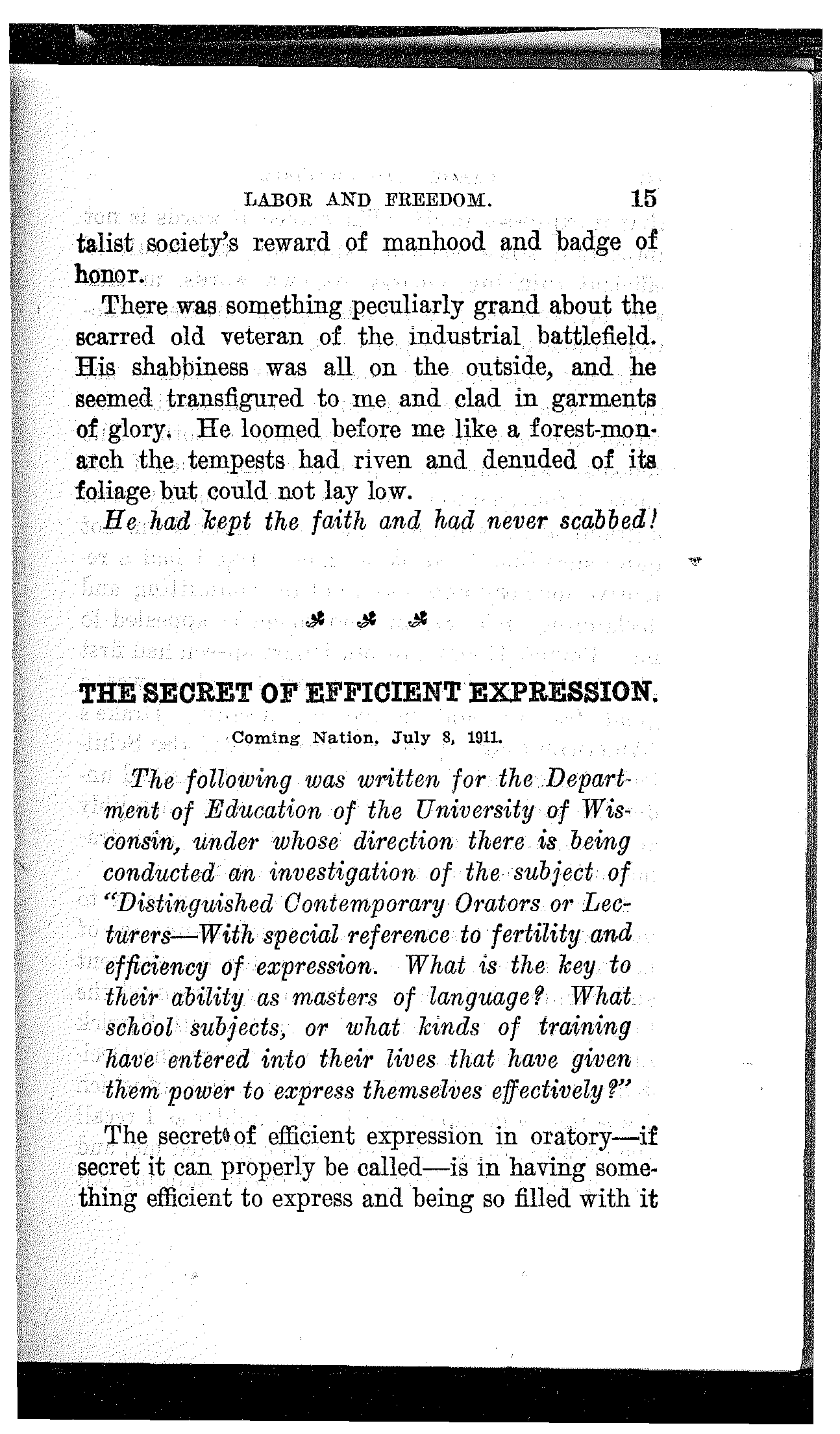 THE SECRET OF EFFICIENT EXPRESSION. Coming Nation, July 8, 1911.