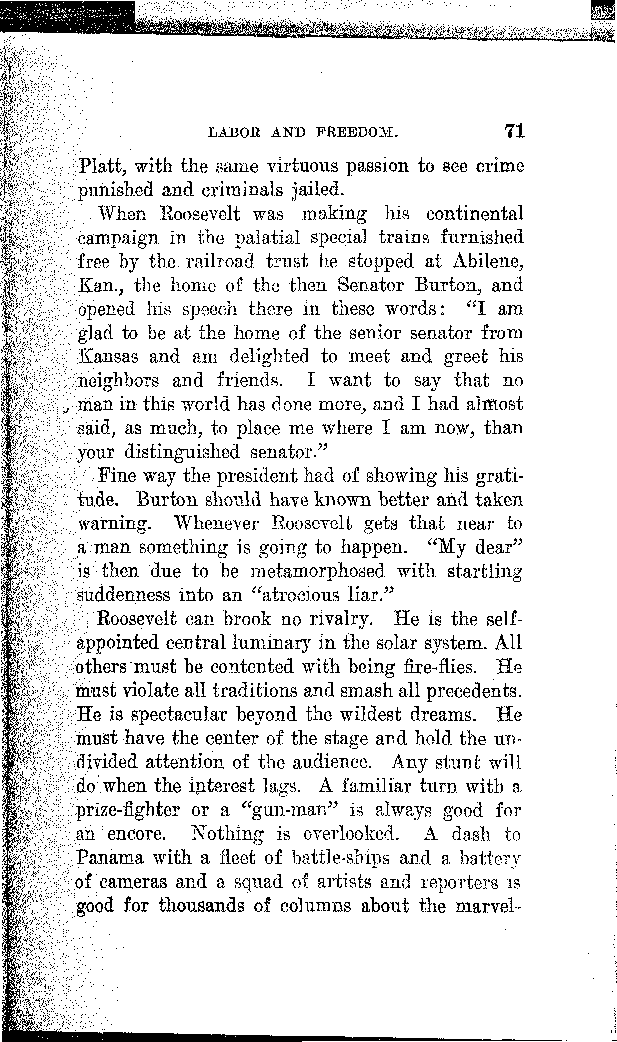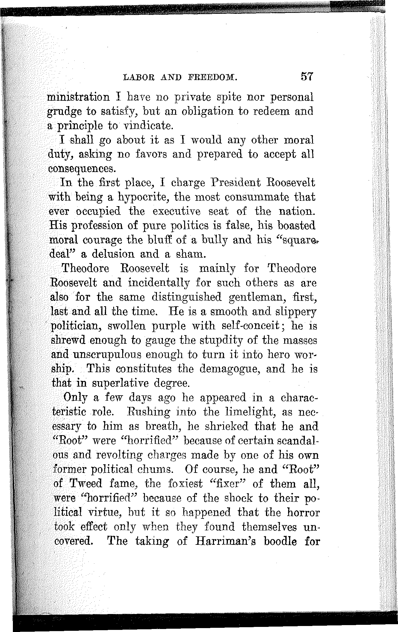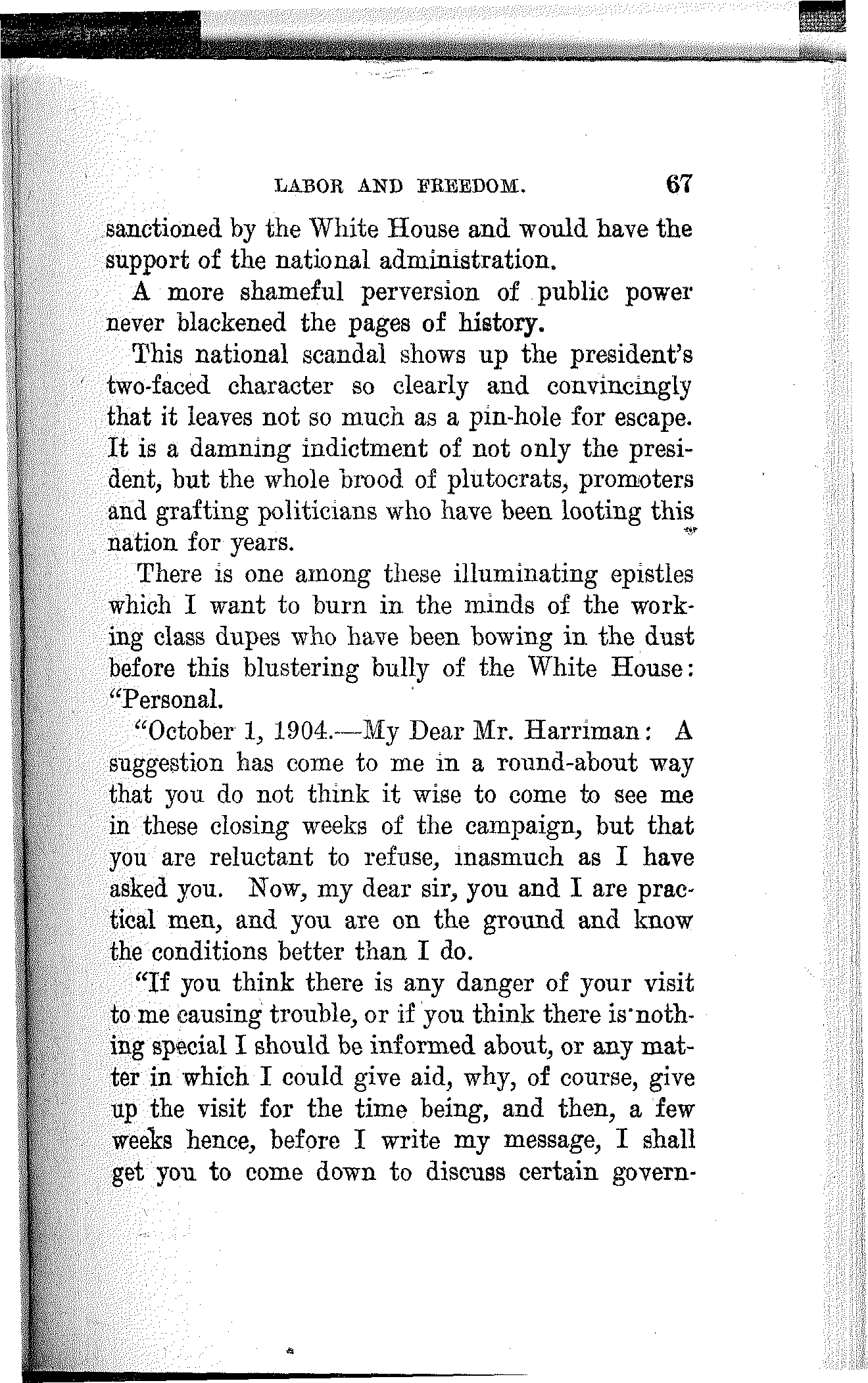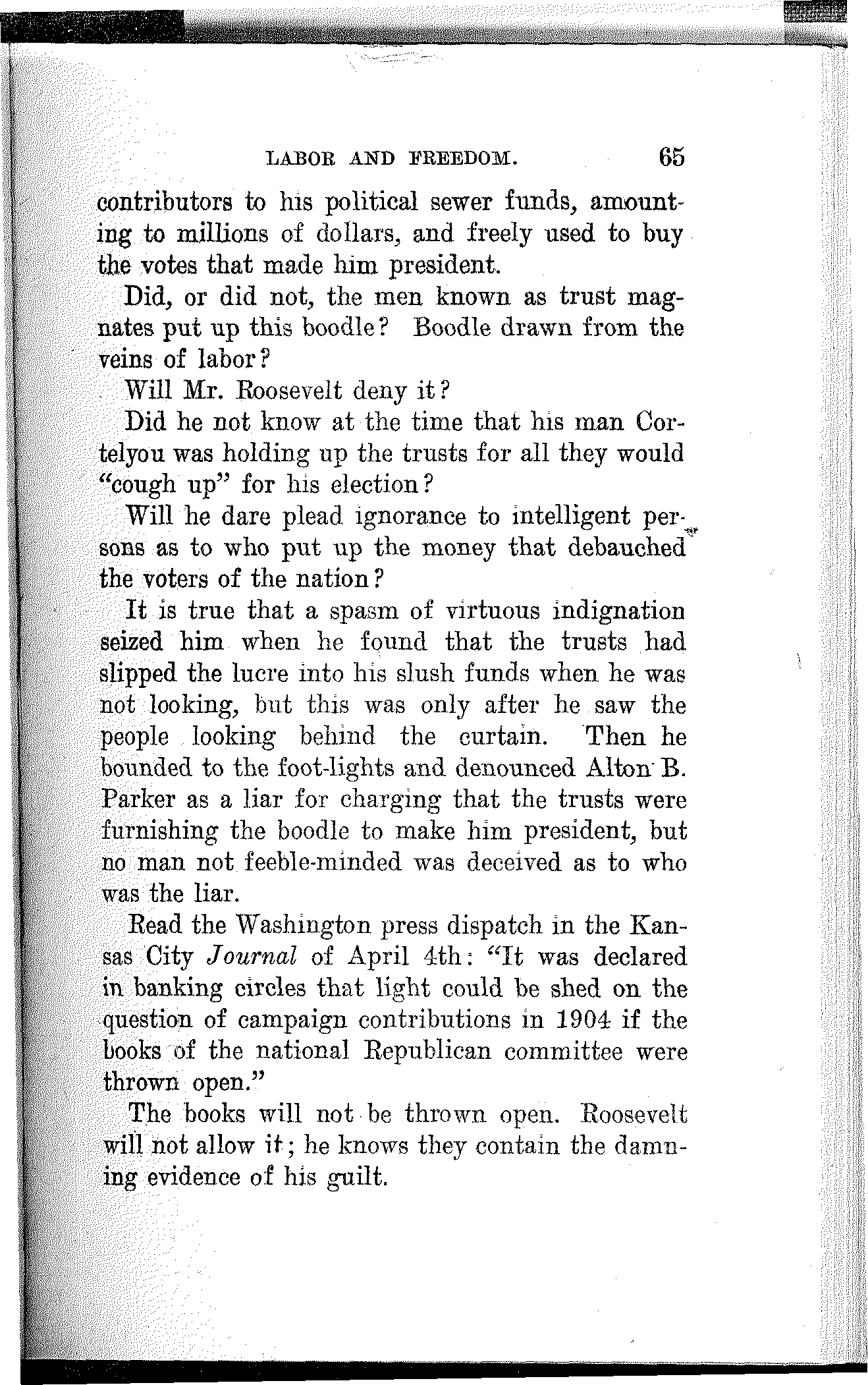 And in the presence of this appalling condition the professional politicians prattle about tariff revision and indulge in silly twaddle about currency reform and regulation of the trusts.