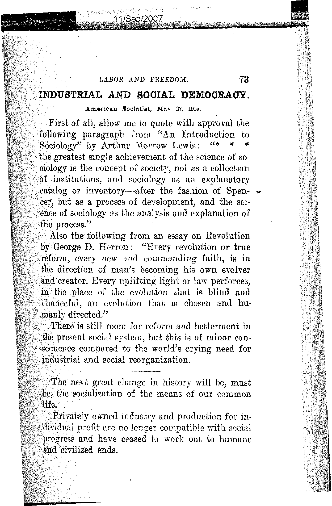 | Industrial and Social Democracy | 73 |