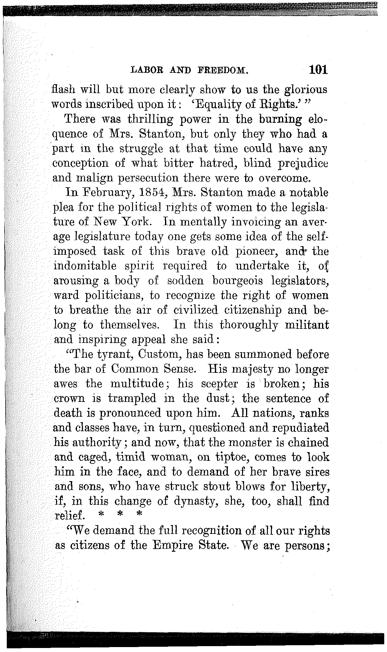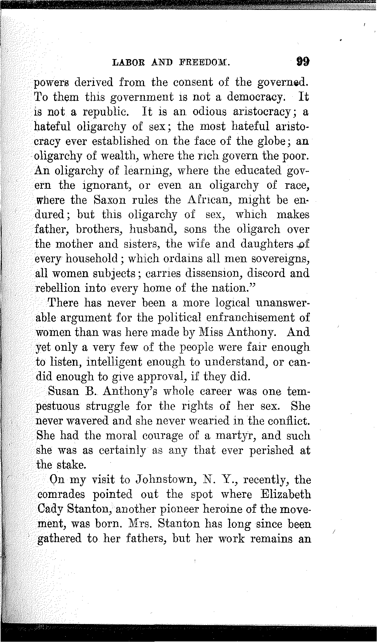 I abhorred slavery in every form. I yearned to see all men and all women free. I detested the idea of some men being ruled by others, and of women being ruled by men. I believed that women should have all the rights men have, and I looked upon child labor as a crime. And so I became an agitator and this ruling passion of my life found larger expression.