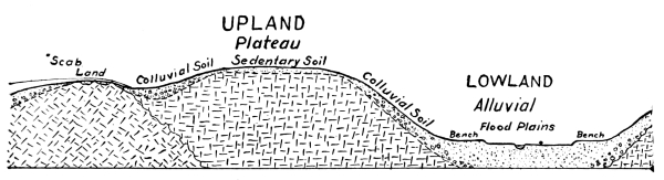 [169] A wholly different kind of “black alkali” exists in some regions, especially in the delta lands of the Colorado of the West and in the Pecos and Rio Grande country in New Mexico. In these cases the dark tint is due, not to a humic solution, but simply to moisture, which is tenaciously retained by the chlorids of calcium and magnesium impregnating the land, thus contrasting strongly with the gray tint of the general dry soil.