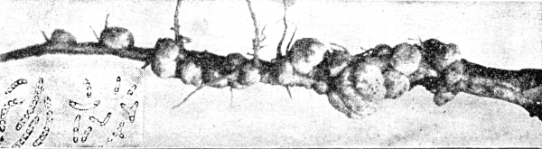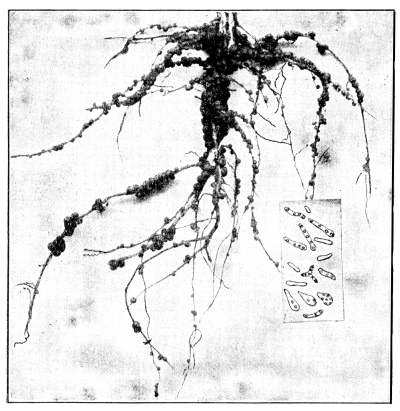 Soil and Subsoil (continued), 142.—Organisms Influencing Soil-Conditions. Bacteria, 142.—Micro-organisms of the Soil. Bacteria, Moulds, Ferments, 142.—Numbers at Various Depths, given by Early Observers, 142.—Investigations of Hohl; Mayo and Kinsley. Tables, 143.—Multiplication of the Bacteria, 144.—Aerobic and Anaerobic Bacteria, 144.—Food Materials required, 145.—Functions of the Bacteria, 145.—Nitrifying Bacteria. Figures, 146.—Conditions of their Activity. Table, 146.—Effects of Aeration and Reduction, 147.—Unhumified Organic Matter does not Nitrify, 148.—Unhumified Vegetable Matter, Functions in Soils, 148.—Denitrifying Bacteria. Figures, 148.—Ammonia-forming Bacteria. Figures, 149.—Alinit, 149.—Effects of Bacterial Life on Physical Soil Conditions, 149.—Root-bacteria, or Rhizobia of Legumes, 150.—Figures of Root Excrescences and Corresponding Bacteroids, 152.—Varieties of Forms, 154.—Mode of Infection, 154.—Cultural Results, 155.—Table Showing Increased Production by Soil Inoculation, 155.—Other Nitrogen-absorbing Bacteria, 156.—Distribution of Humus in the Surface Soil, 157.—Fungi, Moulds and Algae, 157.—Animal Agencies—Earthworms, Insects, Burrowing Quadrupeds, 158.