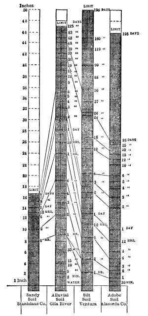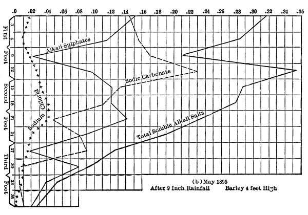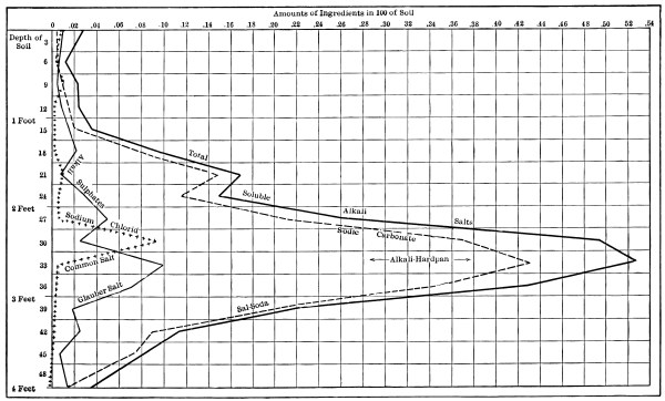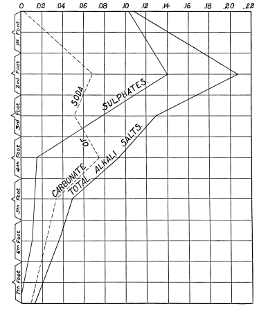 [165] Hilgard and Loughridge, Bulletin No. 128, California Experiment Station; Report California Experiment Station, 1894-95, p. 37; Bulletin No. 30, Office of Experiment Stations; Wollny’s Forsch. Geb. Agr. Phys., 1896.