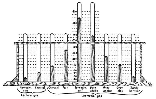 Absorption by Soils of Solids from Solutions. Absorption of Gases, Air of Soils, 267.—Absorption of Solids, 267.—Desalination, 267.—Decolorization, 267.—Complexity of Soil-Action, Physical and Chemical, 268.—“Purifying” Action of Soils on Gases and Liquids, 269.—Waste of Fertilizers, 269.—Variation of Absorptive Power, 270.—Generalities Regarding Chemical Action and Exchange, 270.—Drain Waters, 271.—Distinctions not Absolute, 272.—Absorption or Condensation of Gases by the Soil, 272.—Proof of Presence of Carbonic and Ammonia Gases in Soils, 273.—Absorption of Gases by Dry Soils. Figure, 274.—Composition of Gases Absorbed by Various Bodies from the Air. Table, 275.—Discussion of Table, 277.—The Air of Soils, 279.—Empty Space in Dry Soils, 279.—Functions of Air in Soils, 279.—Insufficient and Excessive Aeration, 280.—Composition of the Free Air of Soils, 280.—Carbonic Dioxid vs. Oxygen, 281.—Relation to Bacterial and Fungous Activity, 281.—Putrefactive Processes, 282. [Pg xi]