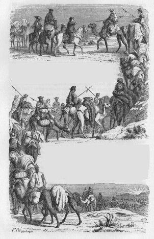 Ever since our entry into the province of Kan-Sou, not a day had passed in which Samdadchiemba had not enlarged upon the subject of the Three Valleys and the Dchiahours. Though there was no very immense amount of sentiment about him, he had a great desire to revisit his native place, and to see once more any members of his family who might happen to be surviving there. We could not do otherwise than aid so laudable a purpose; accordingly, when we were established in the Hotel of the Temperate Climates, we granted to our cameleer eight days’ leave of absence, wherein to revisit his so long abandoned home. Eight days appeared to him fully sufficient for the purpose: two to go in, two to come back in, and four to be spent in the bosom of his family, relating to them all the marvels he had witnessed abroad. We allowed him the use of a camel, that he might appear among his friends with the greater distinction; and five ounces of silver which we placed in his purse completed his recommendations to a favourable reception.