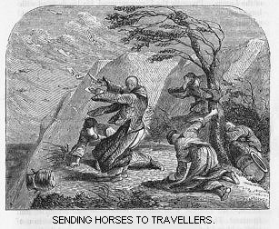 Samdadchiemba had not been gone many days before he suddenly re-appeared amongst us. He had been robbed by brigands who had taken from him his entire provision of meal, butter, and tea. For the last day and a half he had eaten nothing whatever, and, of consequence, his voice was hollow, and his face pale and haggard. Only seeing one camel in the court-yard, we imagined that the two others had become the prey of the brigands, but Samdadchiemba relieved us by the assurance that he had confided them to the Tartar family who had granted him their hospitality. Upon hearing this statement, Sandara knitted his brows. “Samdadchiemba,” said he, “you are my younger brother, as it were; I have therefore a right to ask you a few questions.” And thereupon he submitted the cameleer to an interrogatory characterised by all the depth and subtlety of an able advocate cross-examining some cunning offender. He demanded the minutest details, and applied himself with infinite ingenuity to work up the contradictions into which he involved the questioned party, and to put forward in prominent relief the apparent improbability of his story. How was it, he asked, that the robbers had stolen the butter, yet left the bag in which the butter was carried? How was it they had respected the little snuff-bottle, yet carried off the embroidered purse which served it as a cover. When he had finished his inquiries, he added, with a malicious smile: “I have put these few questions to my brother out of pure curiosity; I attach no importance to them. It is not I who have to disburse the wherewithal to buy him fresh provisions.”