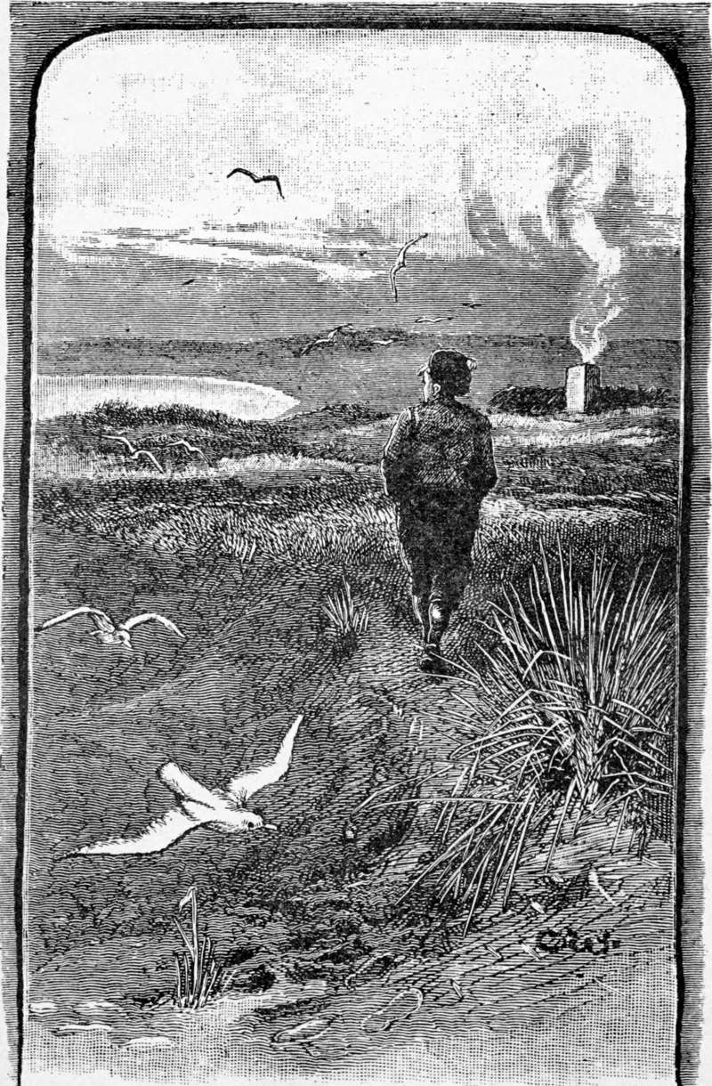 The sun began to set behind the sandhills, whose shadows slowly lengthened, whilst the thin, coarse grass which grew sparsely upon them turned golden in the radiance of departing day. The hoarse cries of the seabirds grew more frequent as they flew hither and thither, as if in search of their night’s quarters; and the little boy, rousing himself at last from his reverie, rose slowly from his sitting posture, stretched his cramped limbs, and began slowly making his way in a diagonal direction across the sandhills.