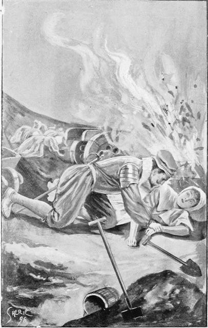 Three of their number lay stretched dead upon the ground. A number more were badly hurt; and all were flying from the stairs, which threatened to become a veritable death-trap for all who tried to mount.