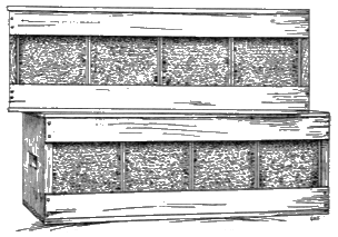 The hives may be piled one on top of the other, the lower tier raised a little from the floor. The entrances should not be contracted unless the colony is comparatively weak. It is usually not considered good policy to close the entrances with ordinary wire cloth, as the dead bees which accumulate more or less on the bottom boards may cut off ventilation, and the entrance should be free so that these may be cleaned out.