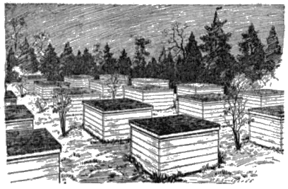 The apiary should be located in a protected place and the colonies should not be moved at the time of packing. Directions are given in this bulletin for the proper arrangement of the apiary to prevent confusion due to the shifting of hives.