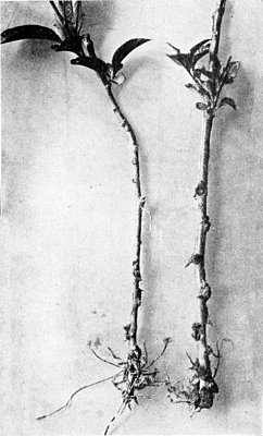 2. The trees are shorter lived.—This statement is true for certain kinds of dwarf trees, but not for others. Certain varieties of pears, for example, which do not unite well with the quince root, naturally make short lived trees. On the other hand other varieties of pears appear to live as long and thrive fully as well on quince roots as on pear roots. There is a common belief, especially in England, that apples worked on French paradise roots are apt to be short-lived. The nurserymen who hold this belief contend, however, that the so-called English Paradise, more properly called Doucin, supplies a stock on which apples will live to as great an age as on any other stock whatever. There is some evidence to show that vigorous varieties of plums worked on Americana roots or on dwarf sand cherry are shorter lived than the same varieties on freer growing stocks. In many cases, however, dwarf trees live as long as standards; and in almost all cases they live long enough.