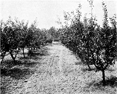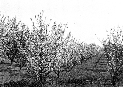 2. For orchard fillers.—As commercial orcharding becomes more refined, under the stress of modern competition, and as good orchard land increases in value, up to one hundred, two hundred, or even three hundred dollars an acre, new methods must be adopted[Pg 14] with a view to increasing the returns. This opportunity looms especially large for the first few years after the establishment of the commercial orchard, more particularly the apple orchard. When standard trees are planted thirty-five to the acre, which is now the usual practice, the land is not more than one-fourth occupied for the first five years, and not more than half occupied for the first ten years. Indeed it is full twenty years from the time of planting before the thirty-five apple trees will use the whole acre. And since a good farmer can not afford to let expensive land lie idle he has before him a very pretty problem to determine how the space between the standard trees shall be utilized during the early years of the orchard's growth.