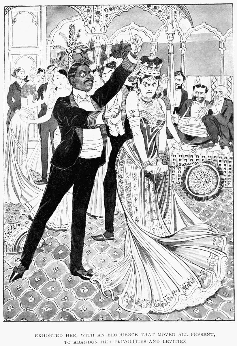 And, as before, Mr Pahtridhji has represented (only with far far less plausibility) a monkey as occupying a prominent situation on the scene of action. I can only conjecture that he is under the impression that ladies in the social position of Princess Jones take horse exercise accompanied by such Simian favourites! Readers, of course, will not hold the writer responsible for these grotesque absurdities, but the pity of it that an ambitious young Native draughtsman should be employed to make a fool of himself in this public manner! I will not insinuate that Misters Publishers are guided by economical motives.