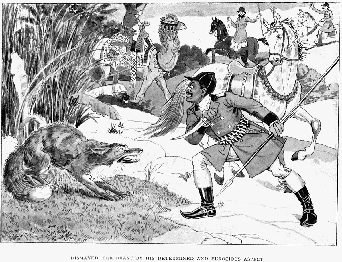 However, to give the devil his due, my illustrator has drawn other parts of the picture—especially the attitude of Mr Bhosh—with considerable spirit and fidelity to the Author's conceptions.